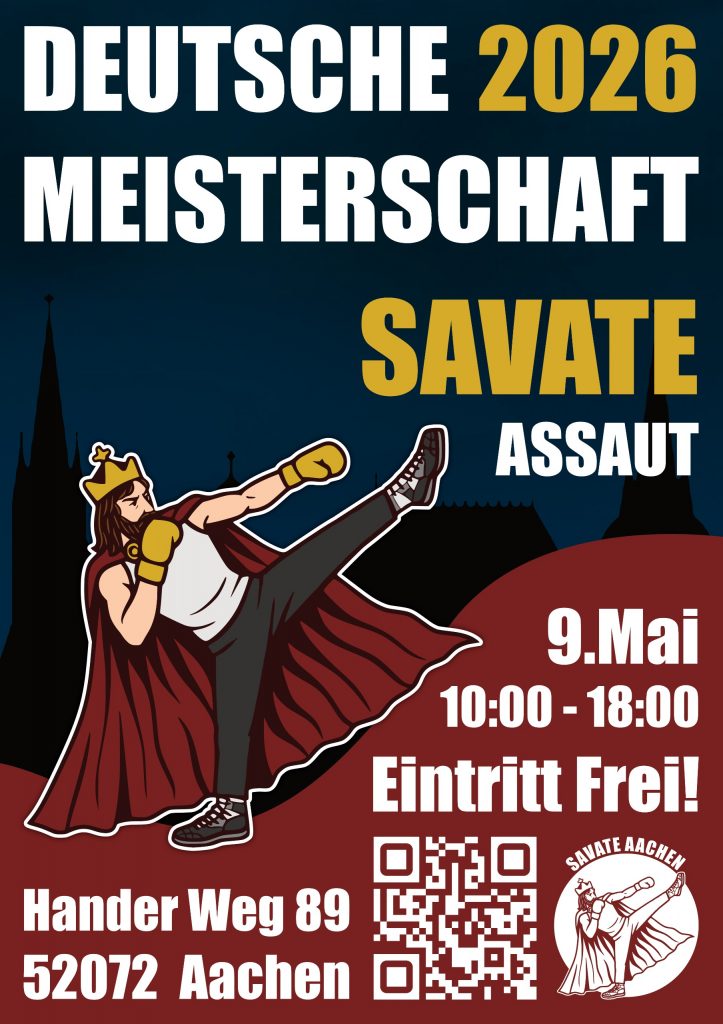 Wir von Savate Aachen sind stolz darauf, in diesem Jahr Gastgeber für das nationale Highlight unserer faszinierenden Kampfkunst zu sein: Am 9. Mai 2026 richten wir die Deutsche Meisterschaft im Savate (Assaut) aus!